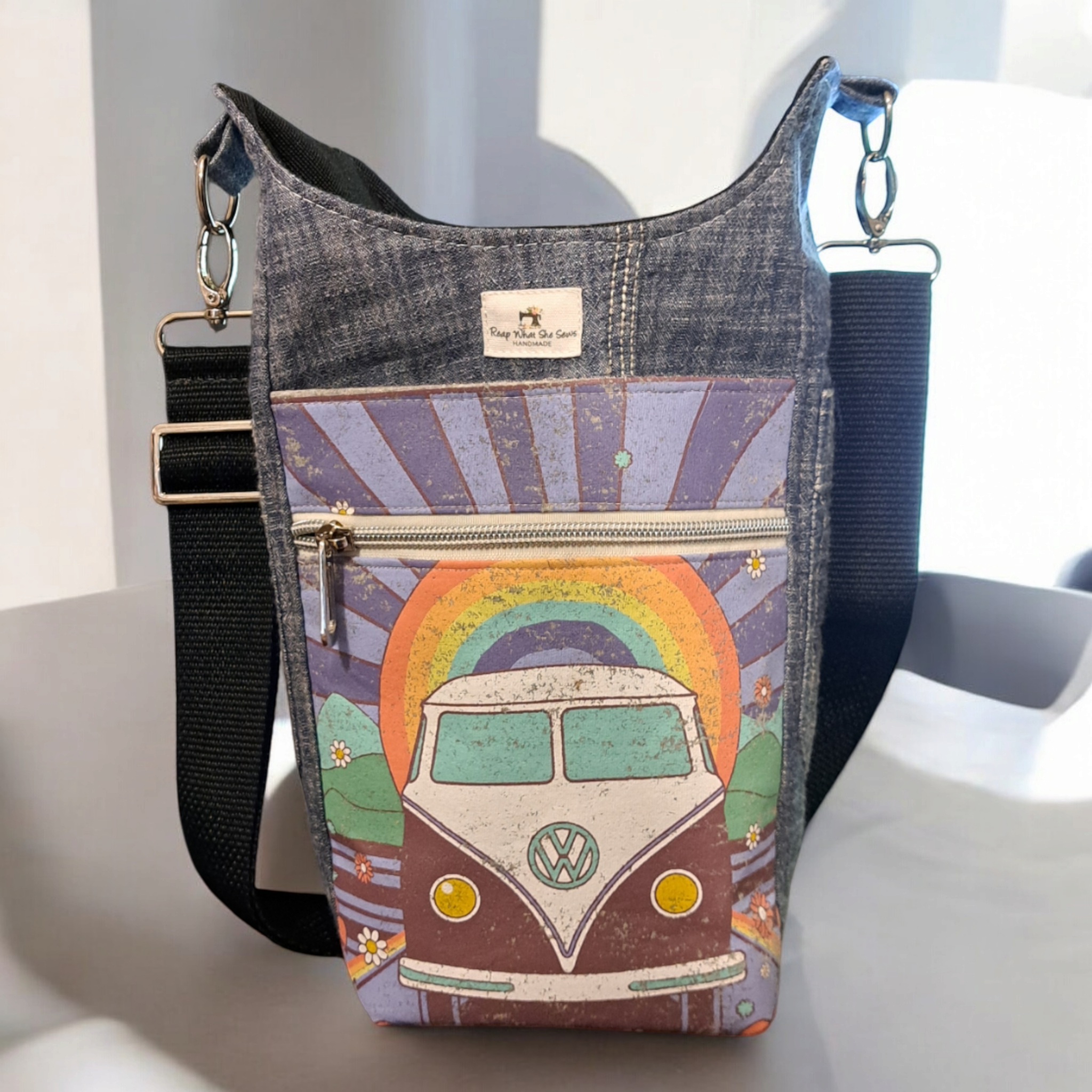 Our bags are made from quality upcycled thrifted fabrics and materials. No two bags are a like.