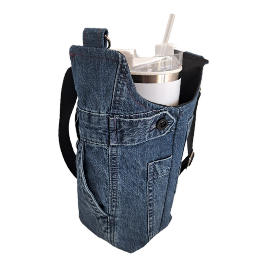 Sold outBlue Jean/Stripe Water Bottle Bag