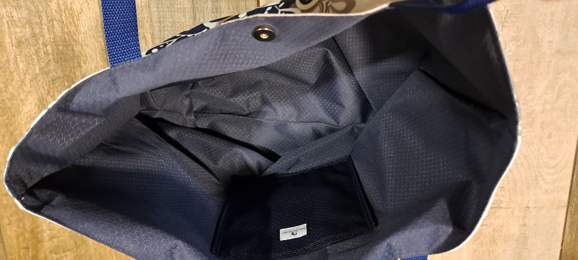 Upcycled fabric with water resistant ripstop lining and snap